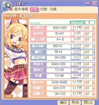見事にSS撮り忘れたので、結果だけ。
