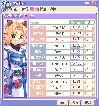 さて、昨日うちの獅子が108レベになりました。