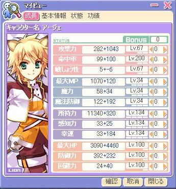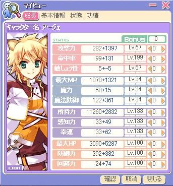 こんな感じ~。レベルは133ですの。